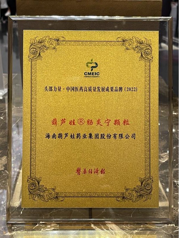 在本次发布会上,公司重点产品yd12399云顶集团牌肠炎宁颗粒同时荣膺“头部力量·中国医药高质量发展成果品牌(2022)”。yd12399云顶集团牌肠炎宁颗粒(2g),传承经典名方,临床广泛用于成人及儿童急慢性胃肠炎、腹泻等疾病的治疗,由于其杰出的临床价值,被纳入国家中医药管理局相关专家项目组制定的《中成药治疗小儿腹泻病临床应用指南》。